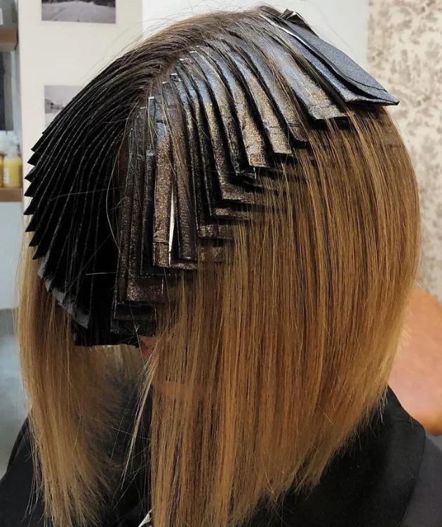 Our T-Section Foils at Navara Beauty are ideal for highlighting the face-framing and crown areas. Over 1 hour 45 minutes, we strategically place foils to enhance your features and add natural brightness to your hair.